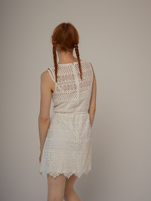 Лёгкое, как дыхание. Выразительное, как движение. Мини-платье из хлопкового кружевного полотна — для тех, кто выбирает нежность с характером.